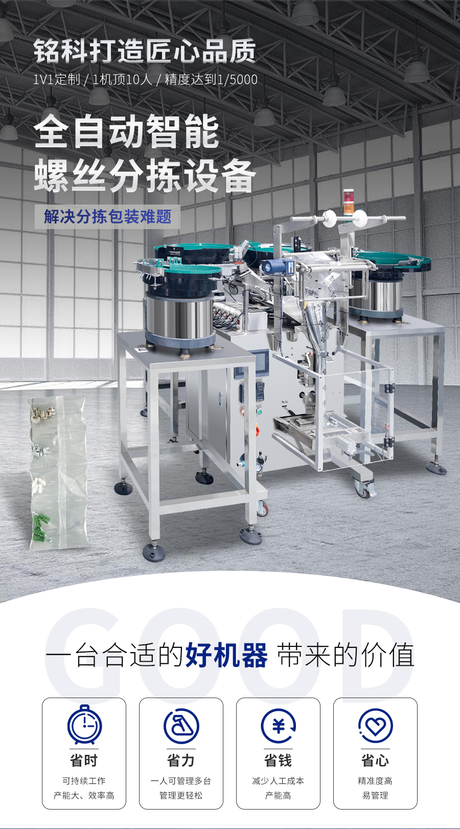 MK-LS4四盤汽配五金配件螺絲分揀包裝機??蓮V泛適用于汽配、電器、燈飾、五金裝飾產品的附屬安裝螺絲、螺母、小塑膠件的混合包裝。替代了預制袋成型方式,大大提高了工作效率,,為各螺絲應用企業(yè),廣泛采用中,特殊形狀零件也可按客戶要求定制。本機采用微電腦控制,包裝過程自動實現(xiàn)。