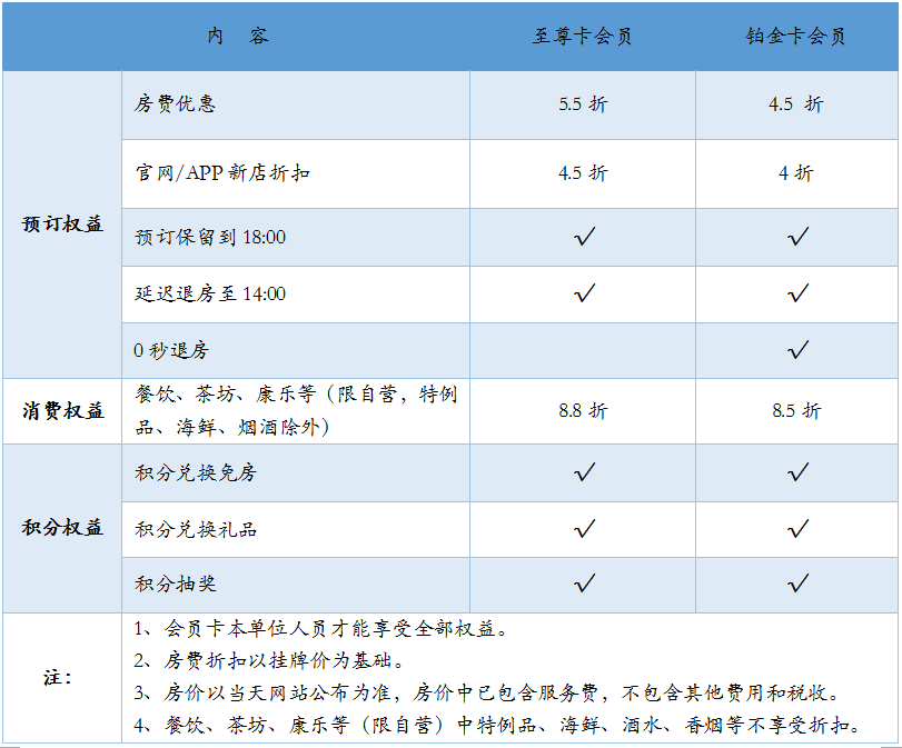 1、“海頤匯”單位會員卡分為“至尊卡”、“鉑金卡”,僅限本單位使用,不得向本單位無關人員公開,不得轉借他人、其他單位使用,否則所產生后果新華海頤酒店集團概不負責。