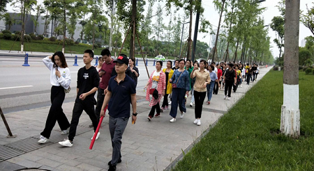 2019年5月14日早酒店工會組織全體員工從酒店出發(fā)步行前往活動地點虎嘯山莊,一路上歡聲笑語,氣勢昂揚(yáng),展現(xiàn)出我們“新華海頤”人的朝氣蓬勃的精神。